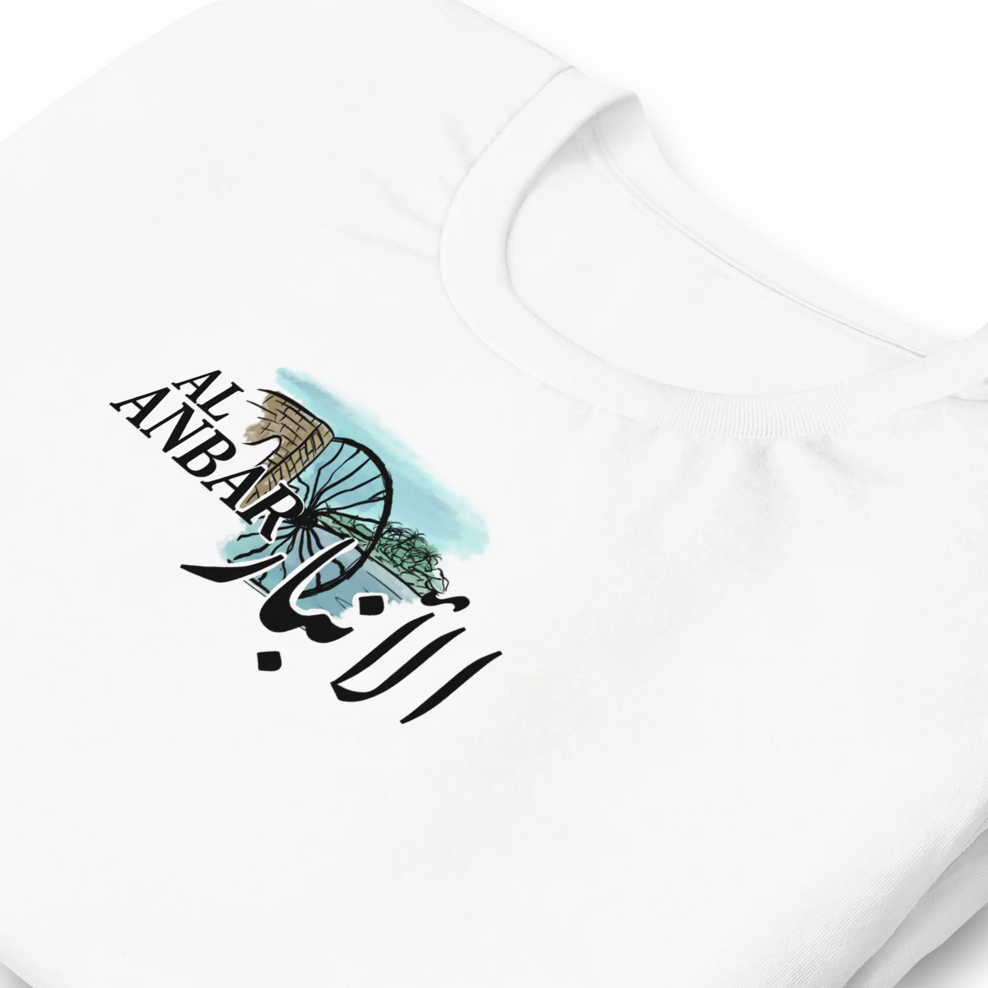 The Al Anbar City Collection shirt pays tribute to Iraq’s largest province, showcasing the name Al Anbar in English and Arabic, alongside the iconic water wheel mill—a symbol deeply rooted in the region’s identity.